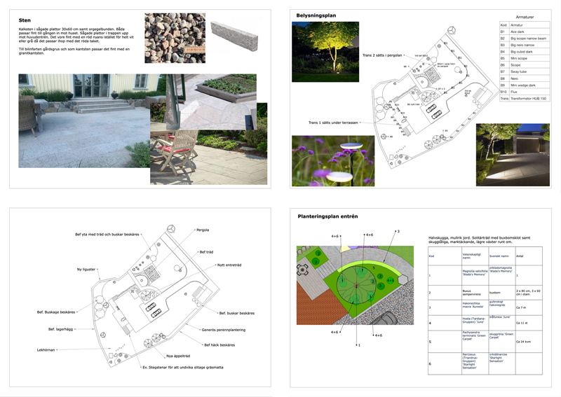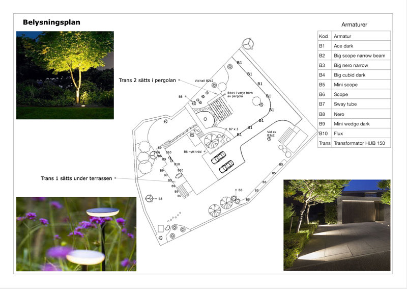 5. Belysningsplan – Belysning ger trädgården den där extra touchen under de mörka timmarna! En detaljerad belysningsplan från våra belysningsexperter ingår.